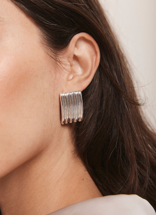 Silver Tone Statement Ridge Earrings