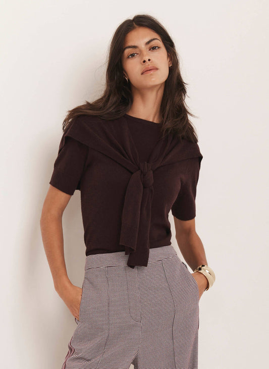 Burgundy Cotton Blend Scarf Detail Knit Top