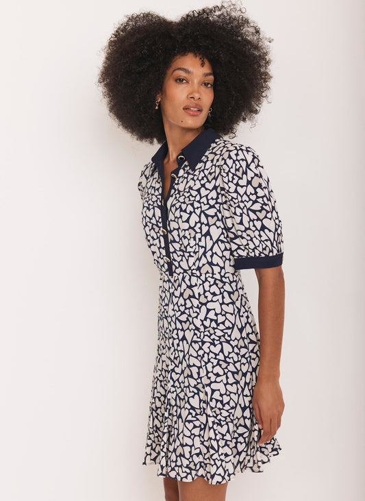 • Navy Heart Print Mini Dress