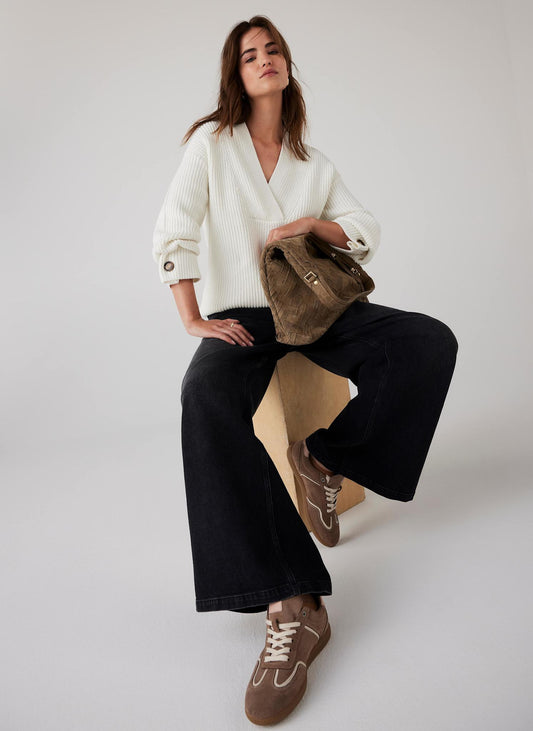 Neutral Cotton Blend Scarf Detail Knit Jumper