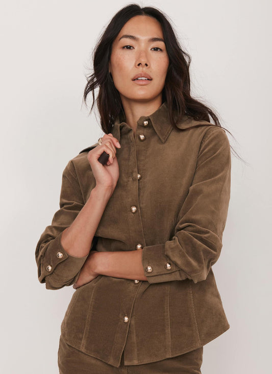 Brown Fitted Corduroy Shirt