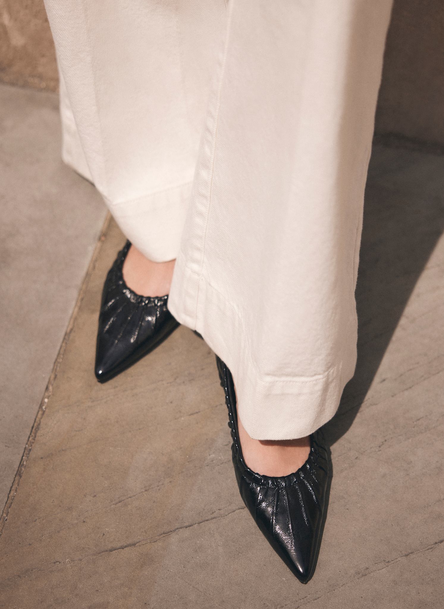 Arella Black Leather Flat Pumps