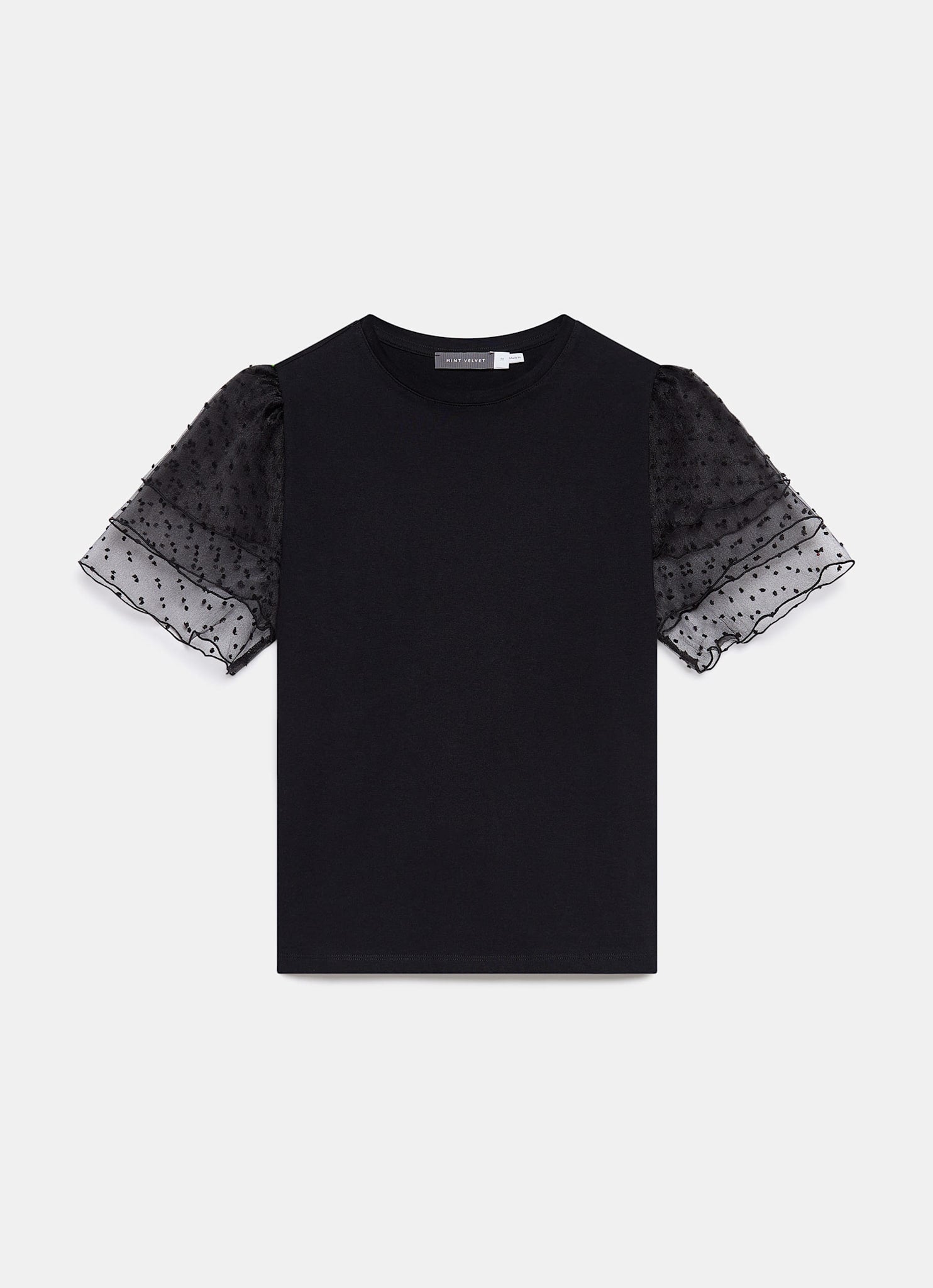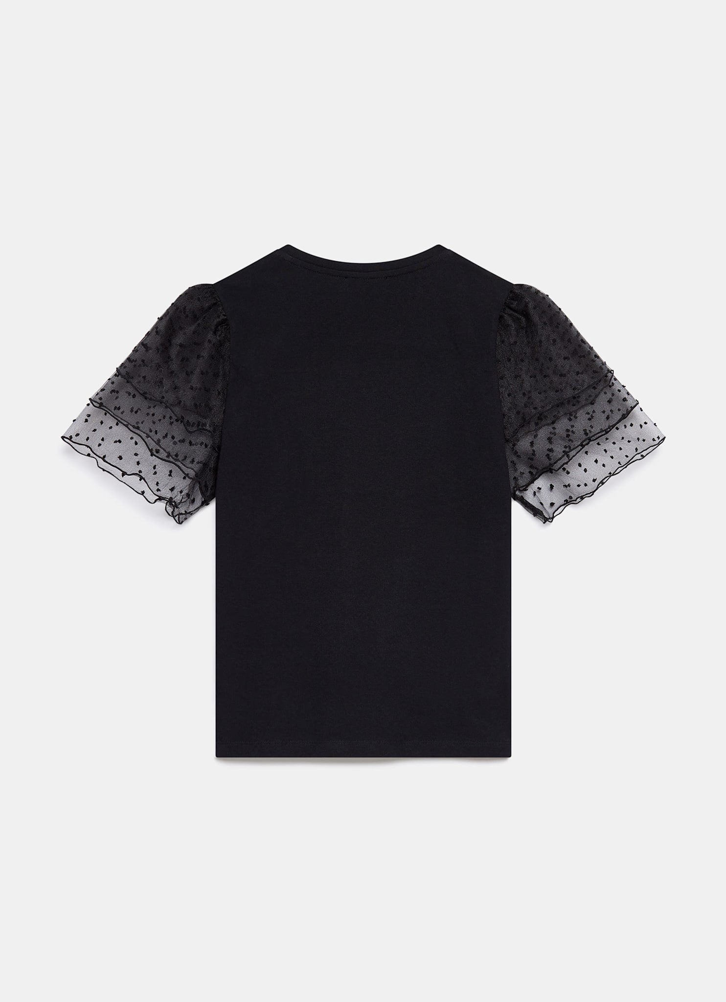Black Cotton Tulle Sleeve T-Shirt