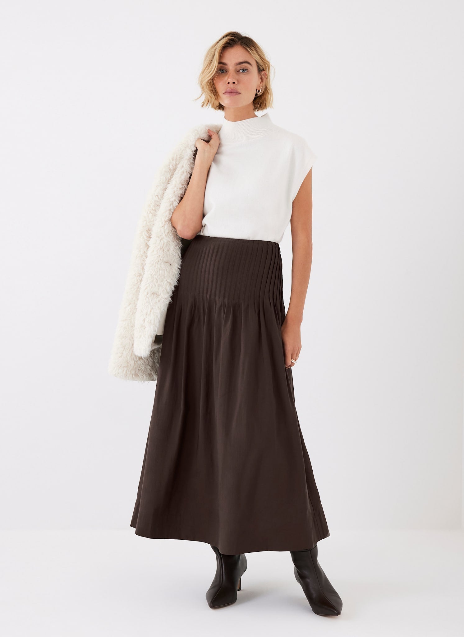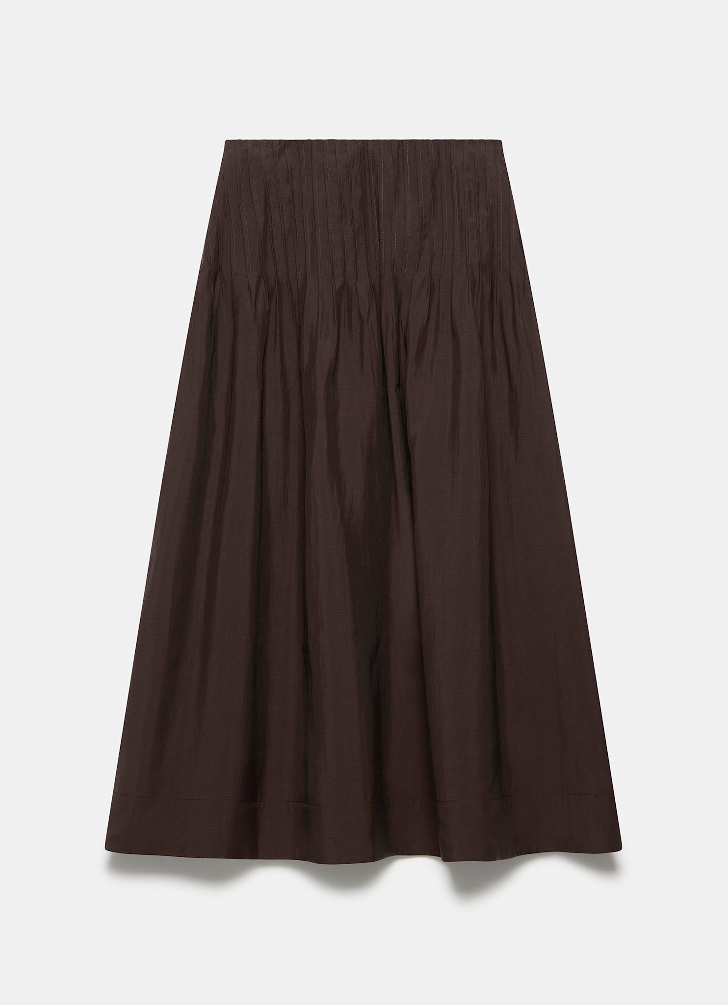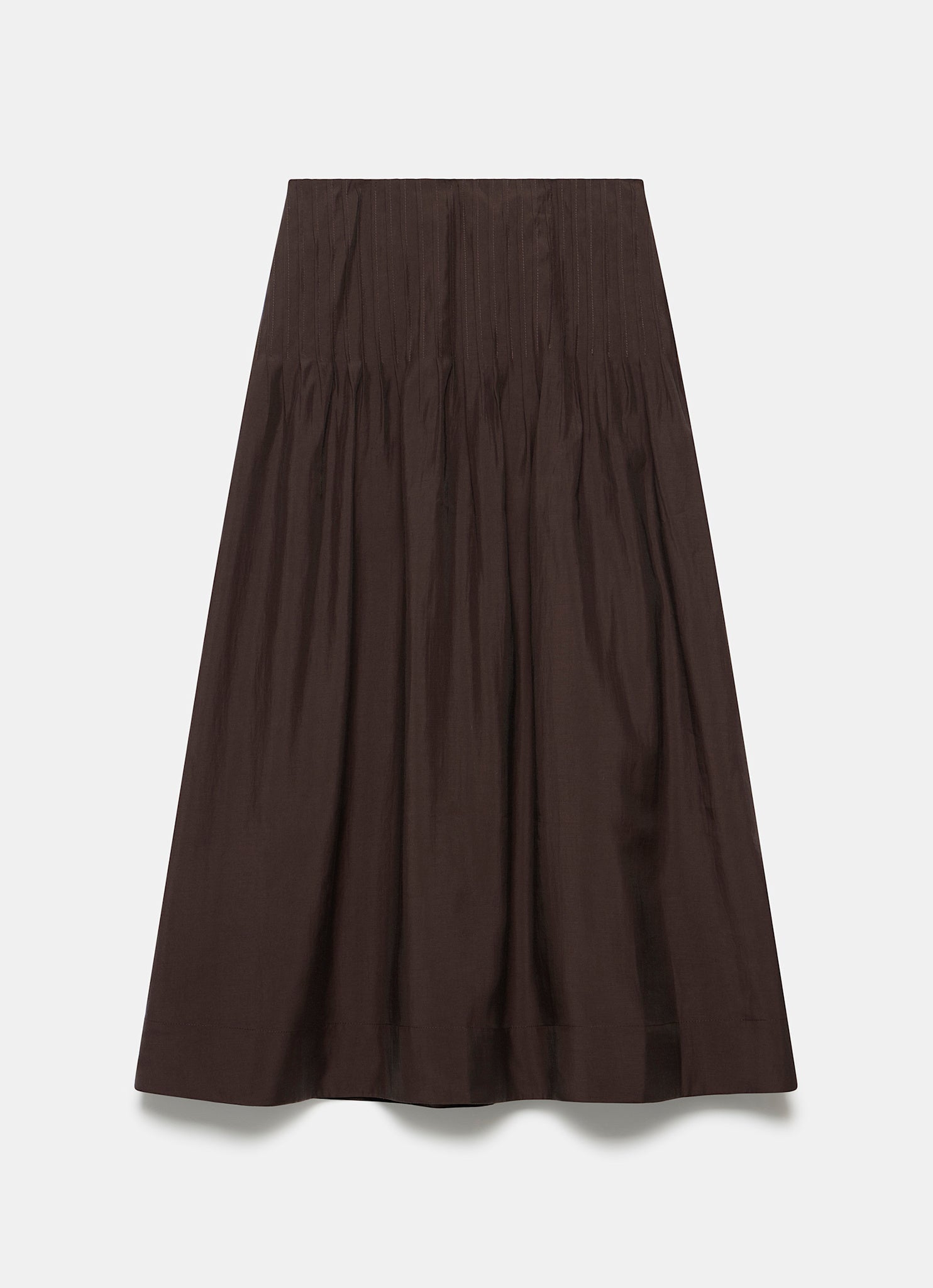 Brown Pintuck Maxi Skirt