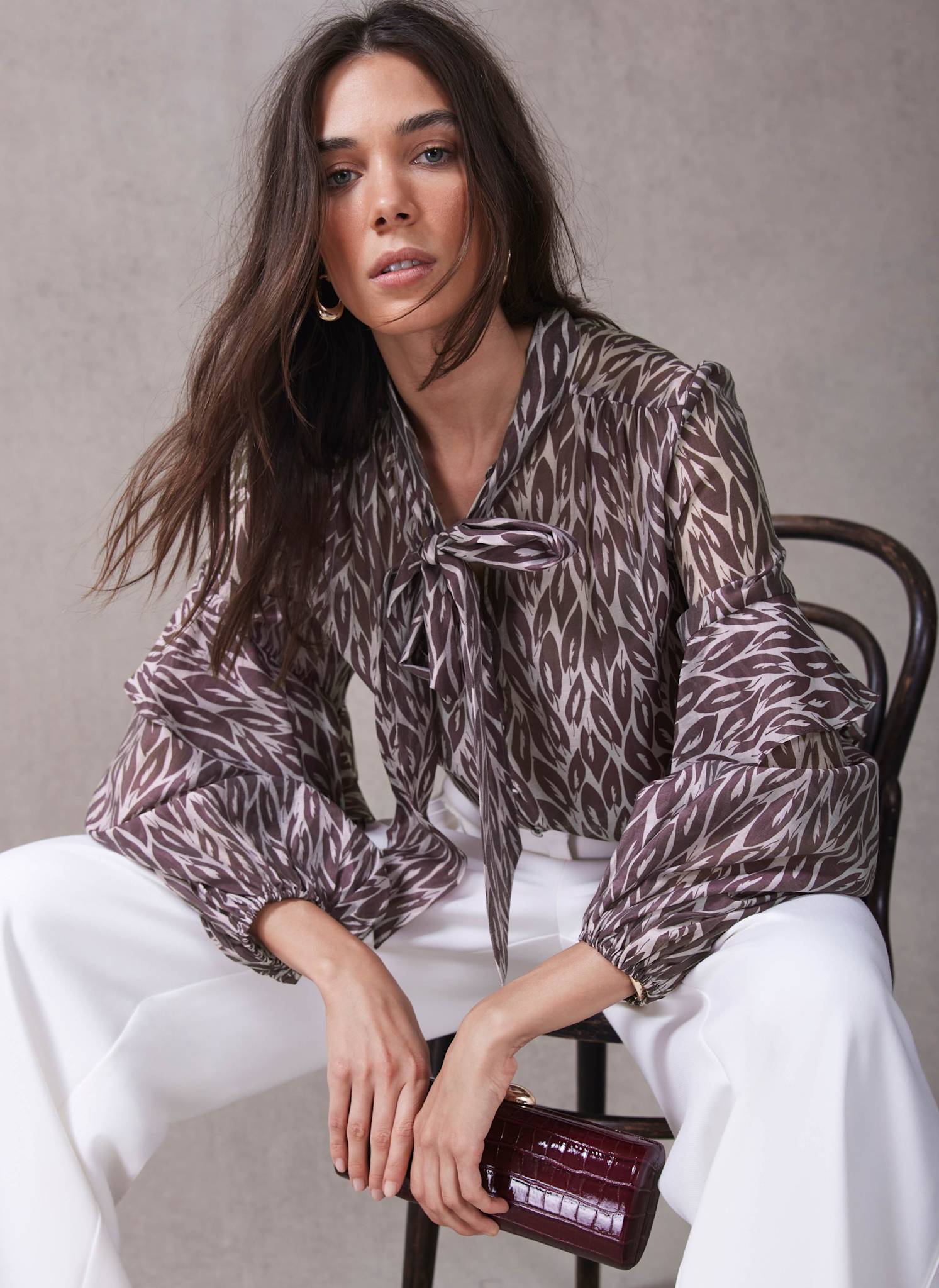 Burgundy Leaf Print Blouse