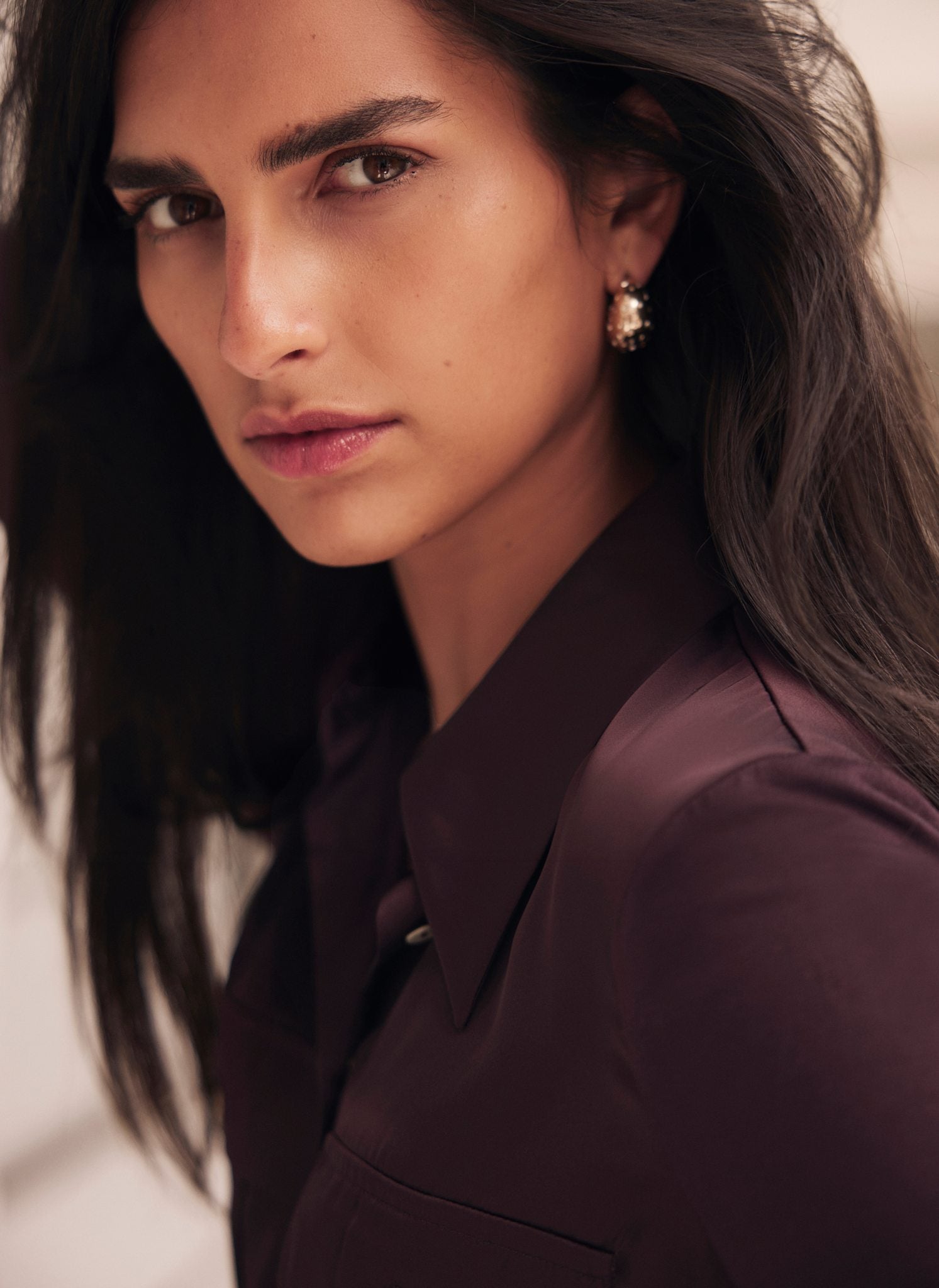 Burgundy Satin Utility Shirt
