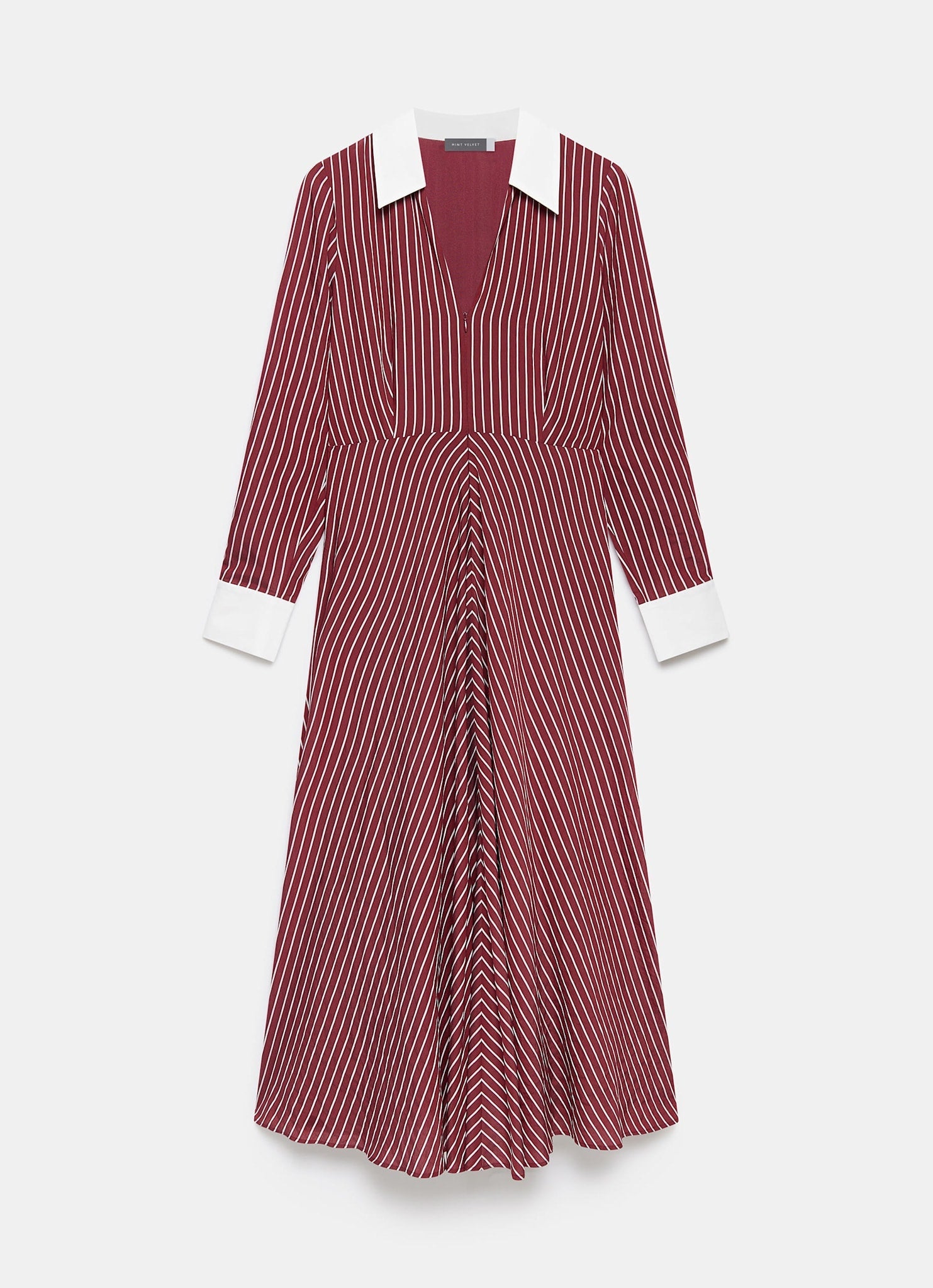 Burgundy Striped Maxi Shirt Dress
