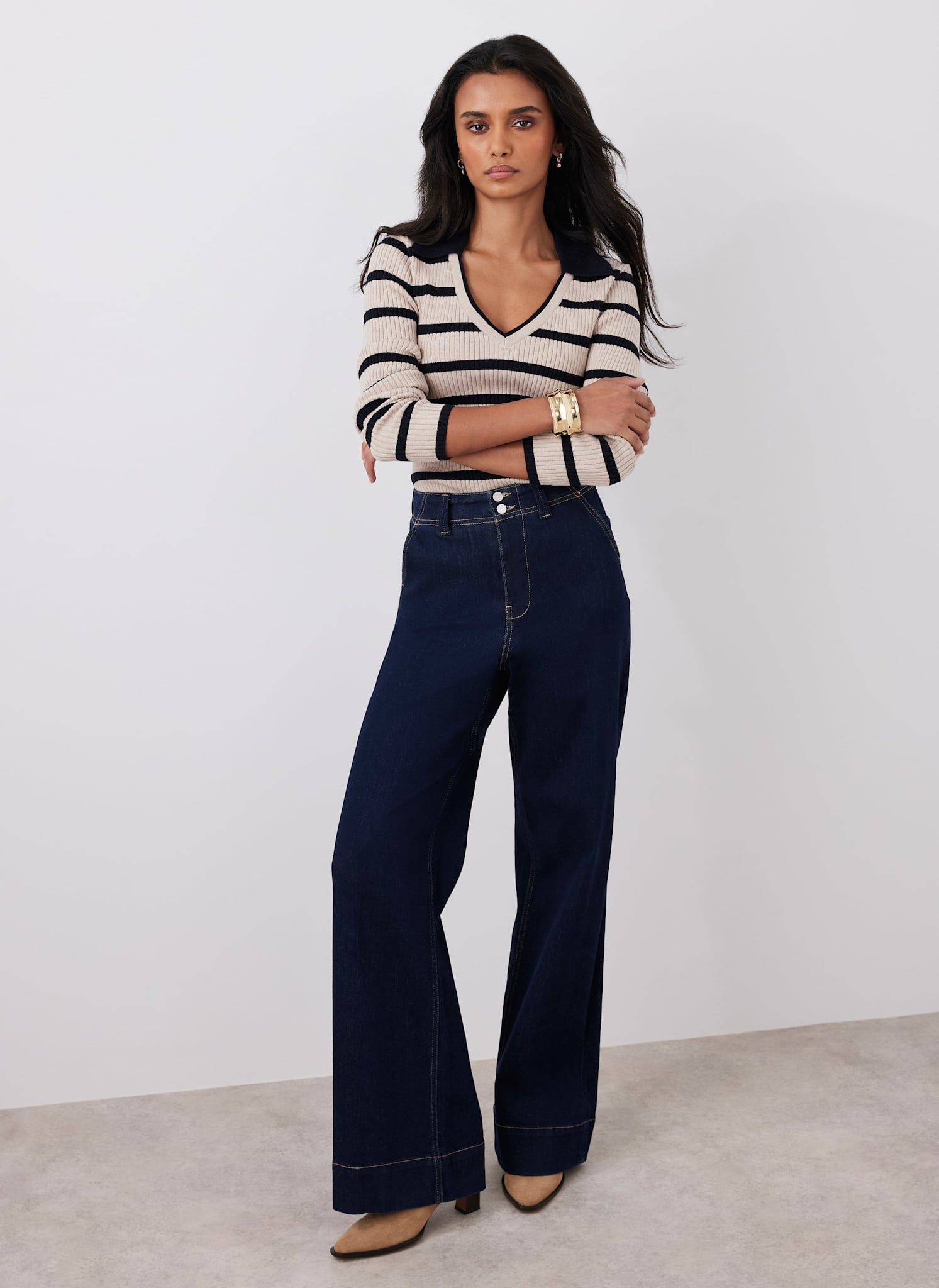 Dark Indigo Drop Waist Collared Denim Dress