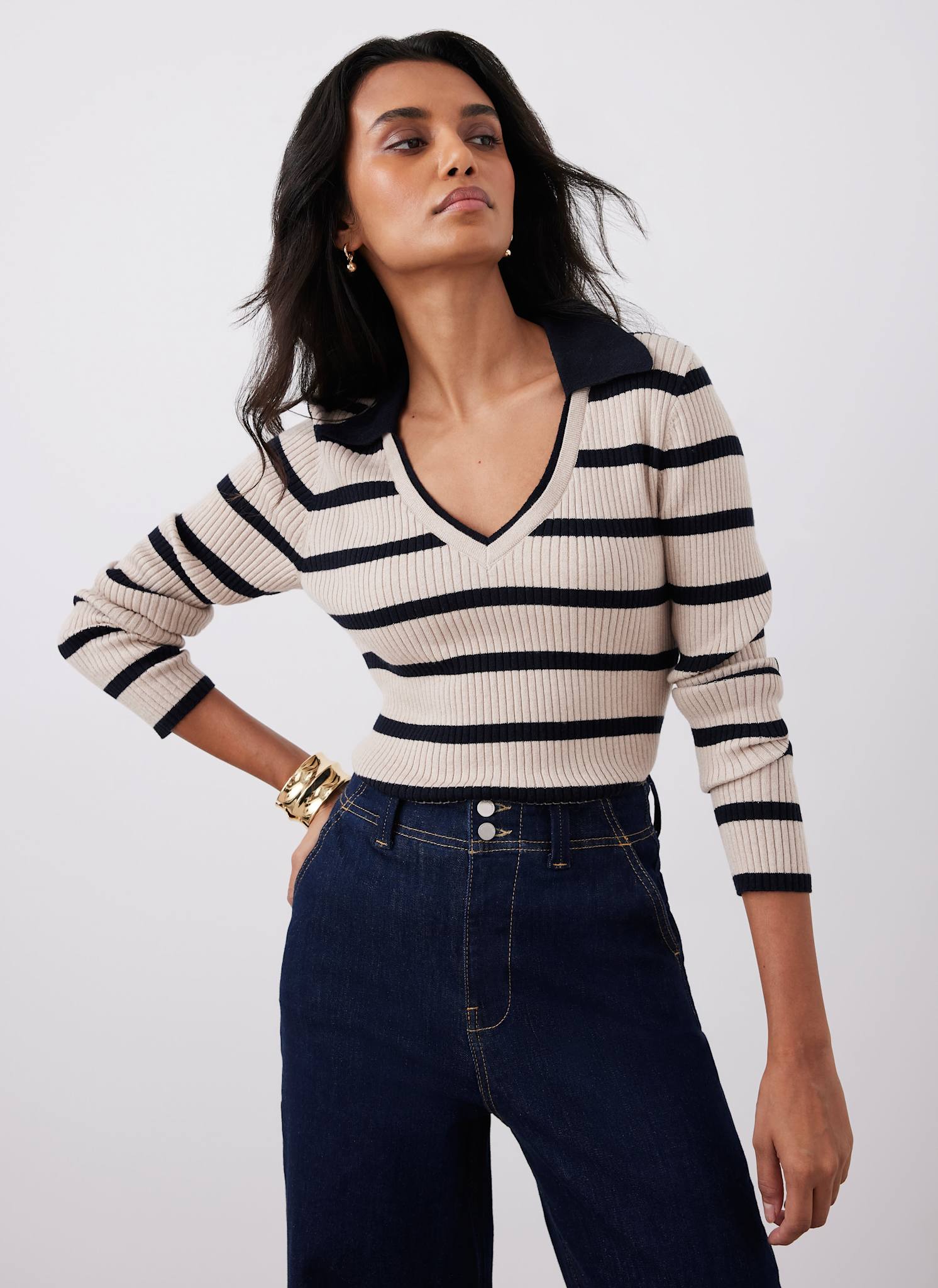 Cream Cotton Blend Striped Ribbed Top