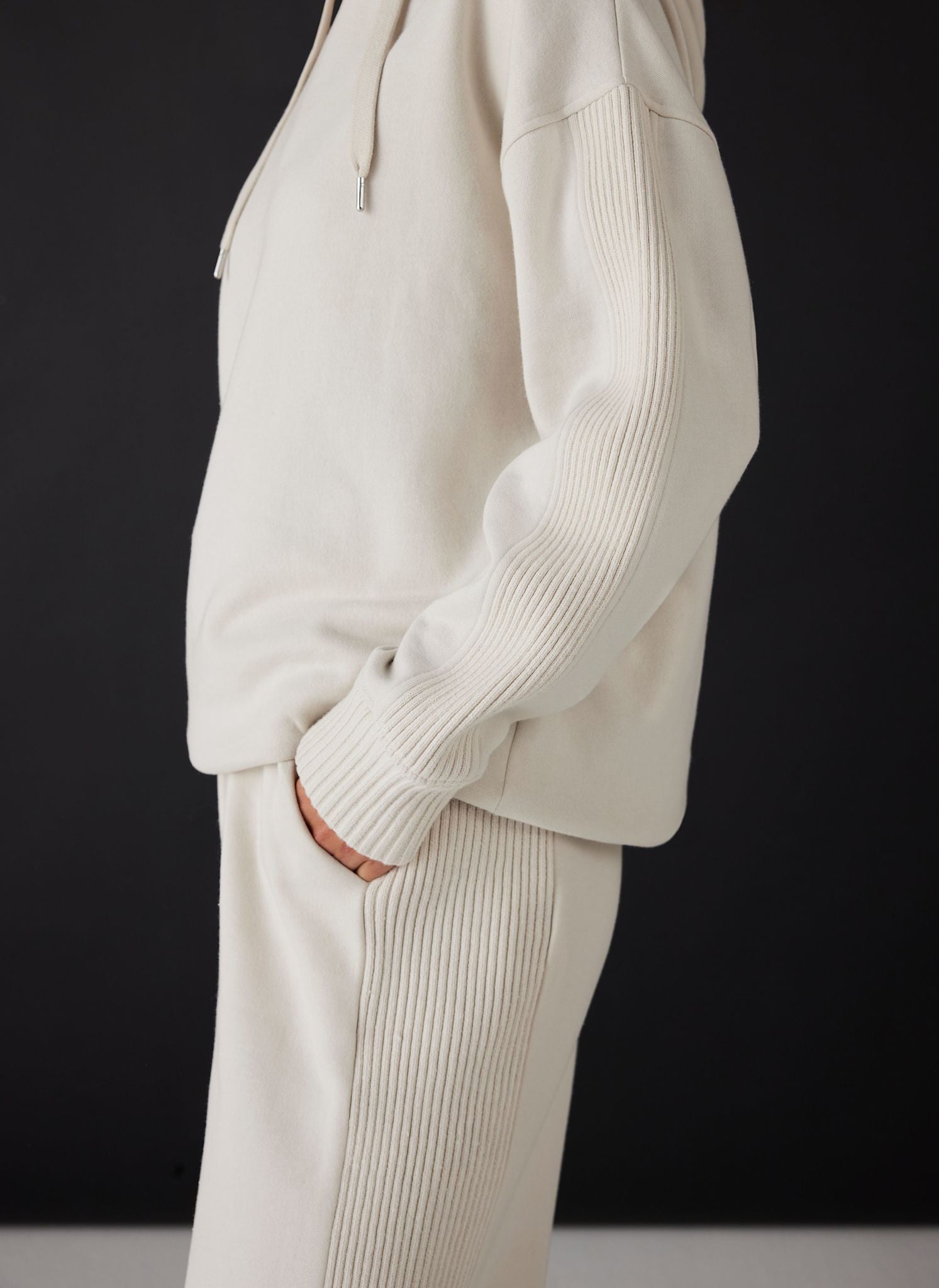 Cream Cotton Blend Wide Leg Joggers