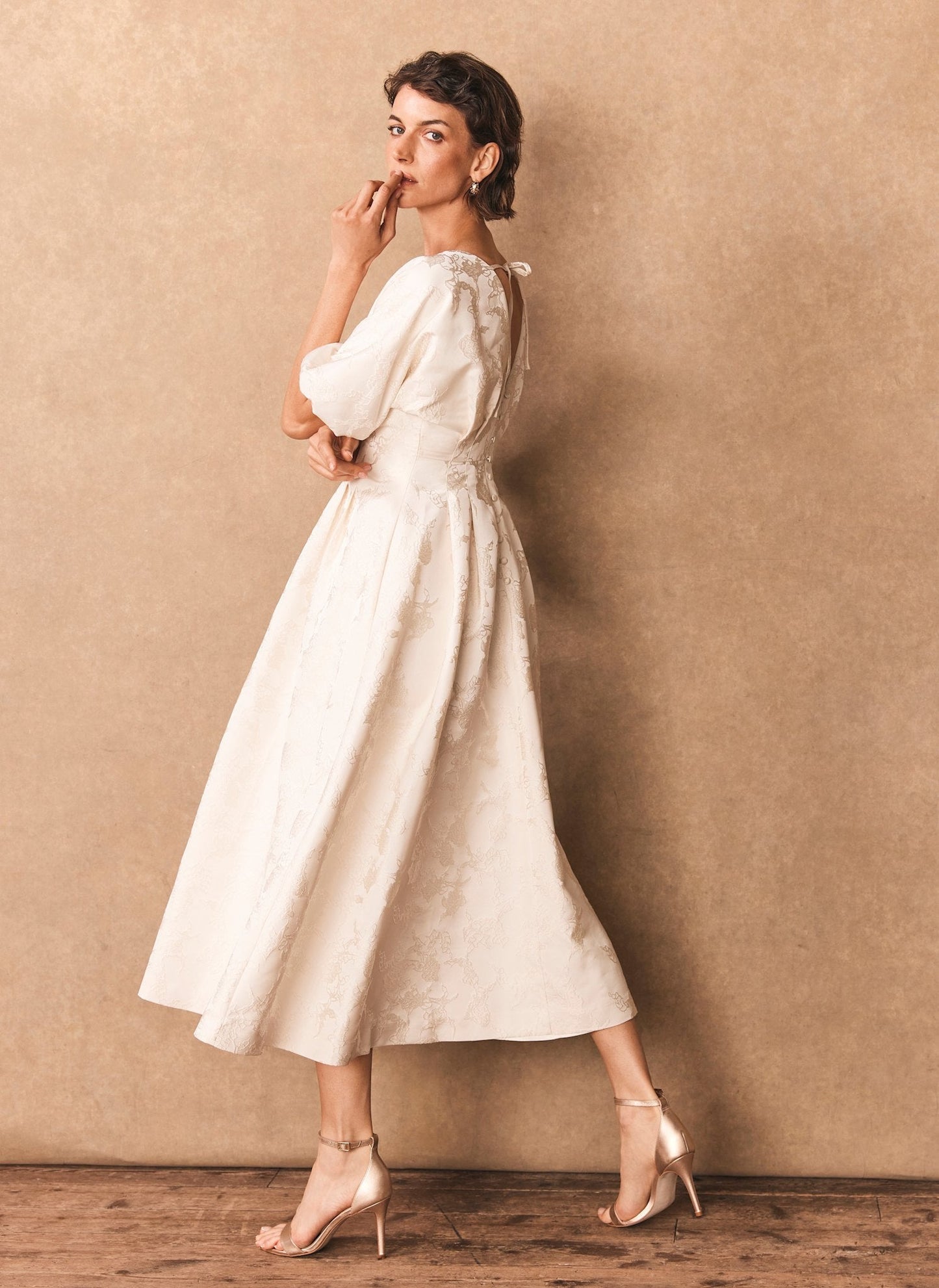 Cream Jacquard Midi Dress