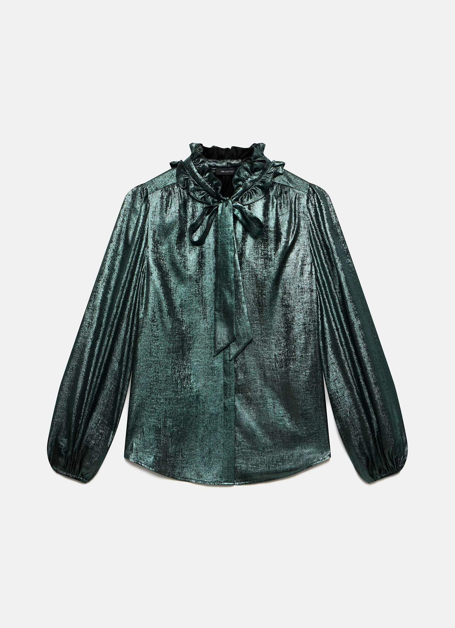 Green Metallic Pussy Bow Blouse