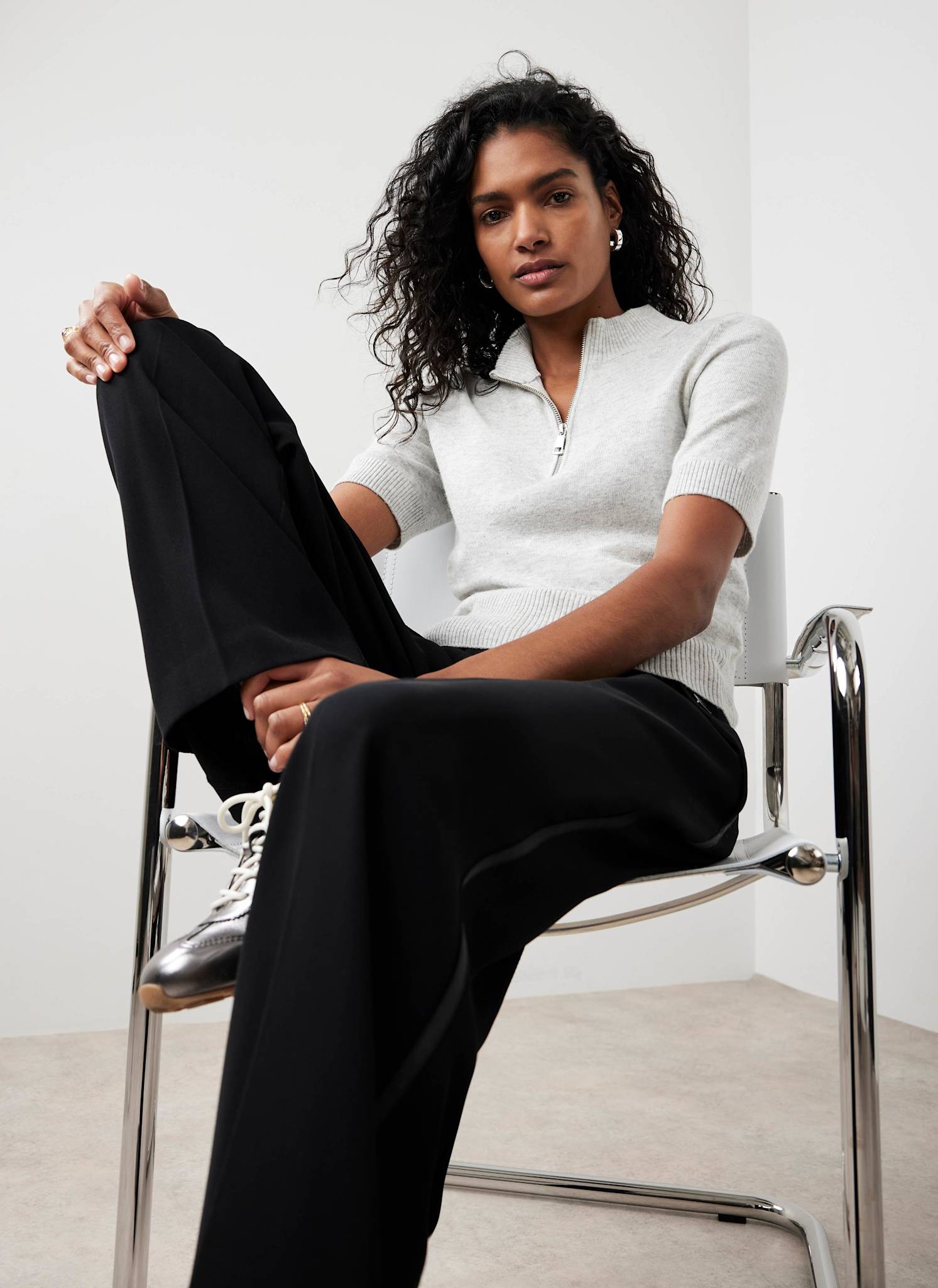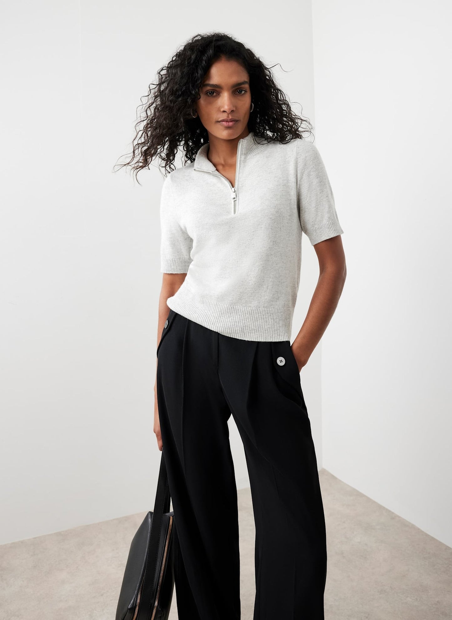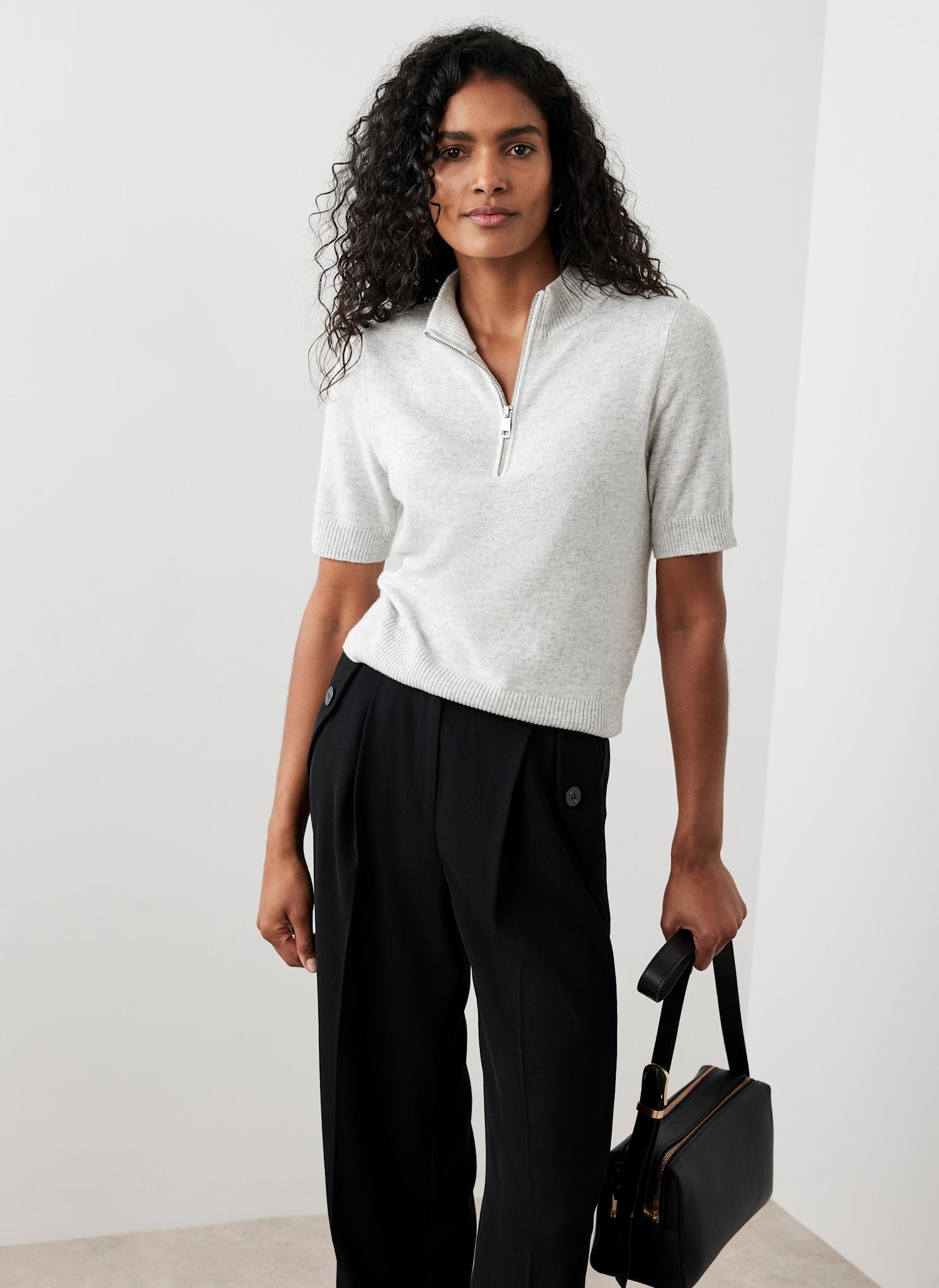 Grey Short Sleeve Knit Top