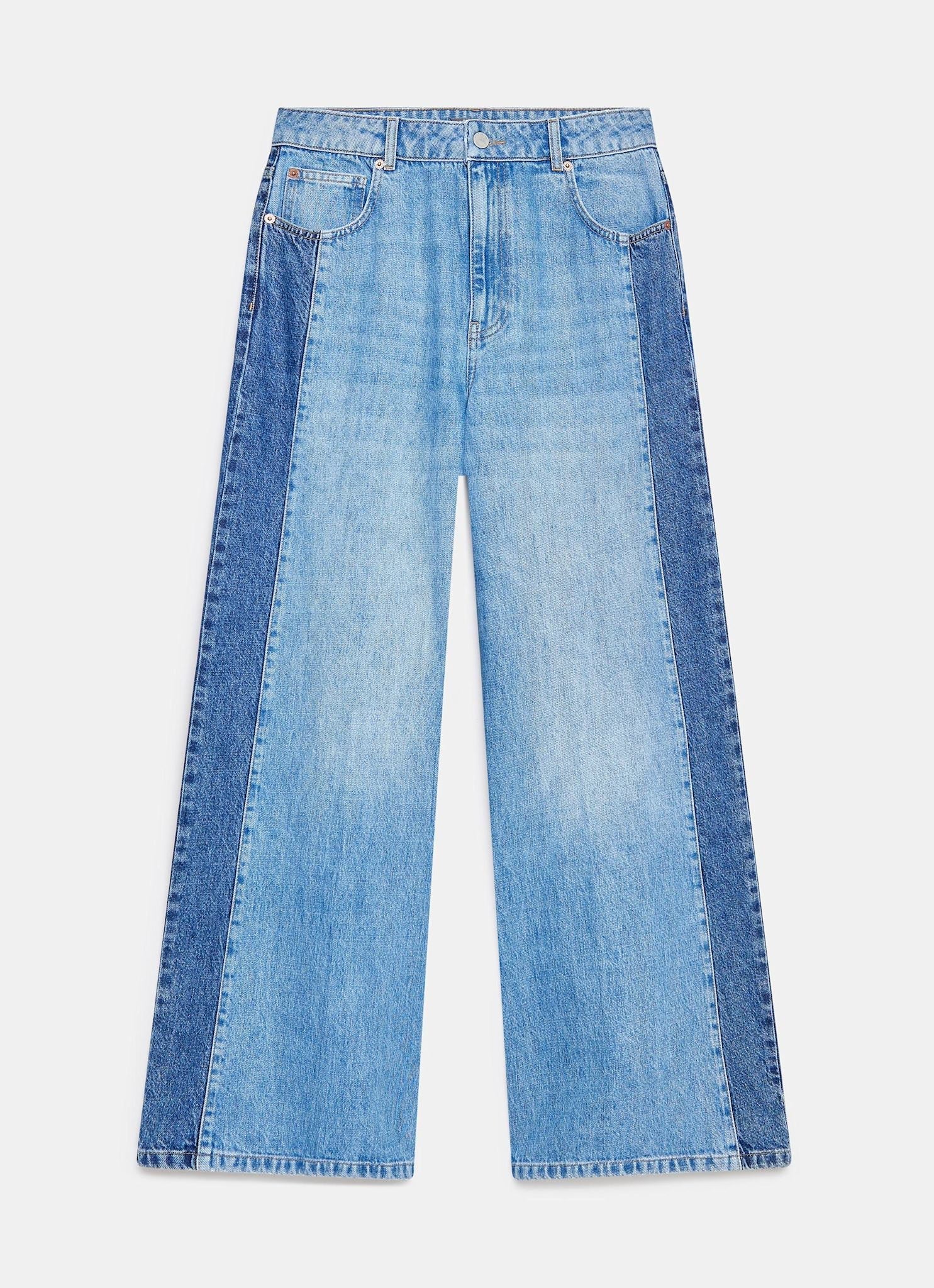 Indigo Contrast Denim Wide Leg Jeans