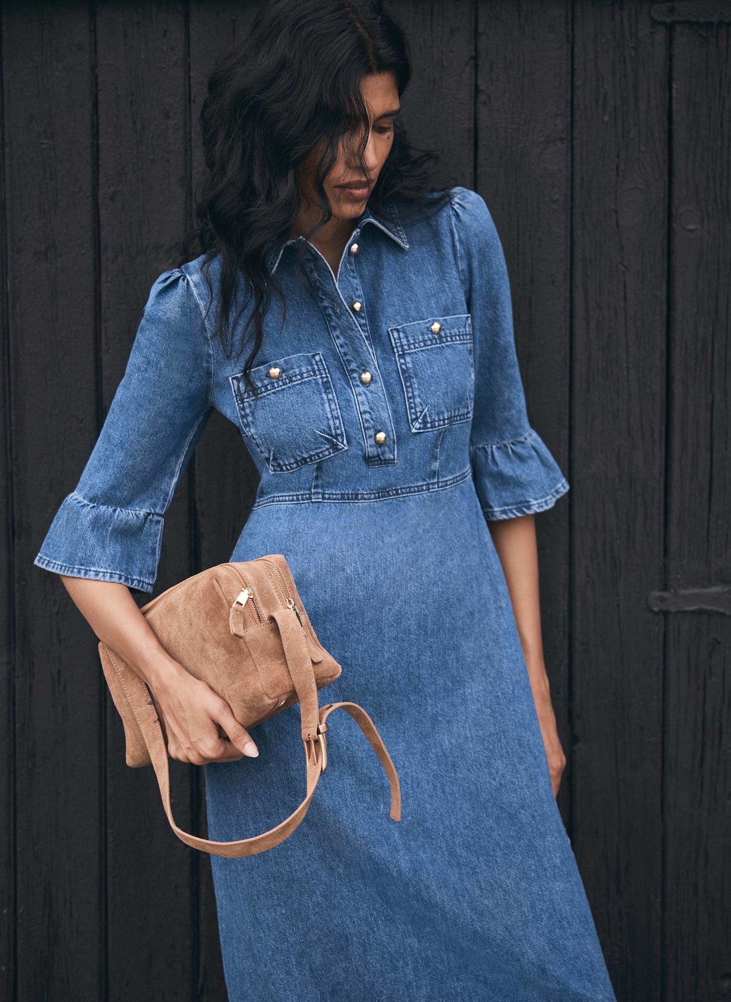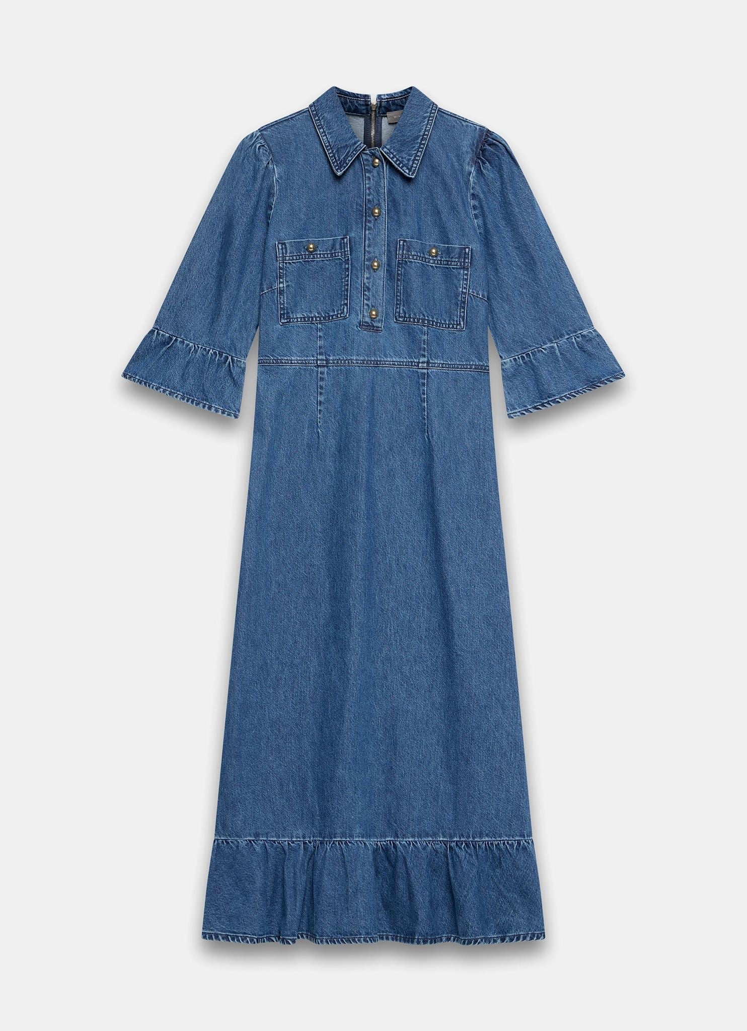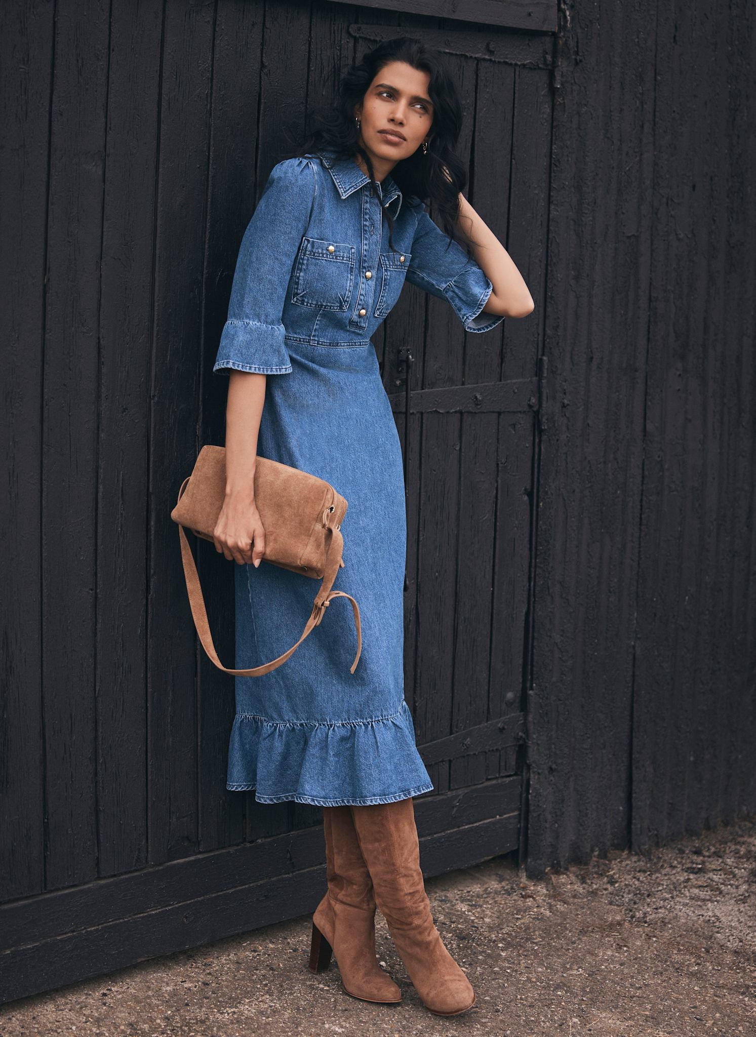 Indigo Denim Midi Shirt Dress