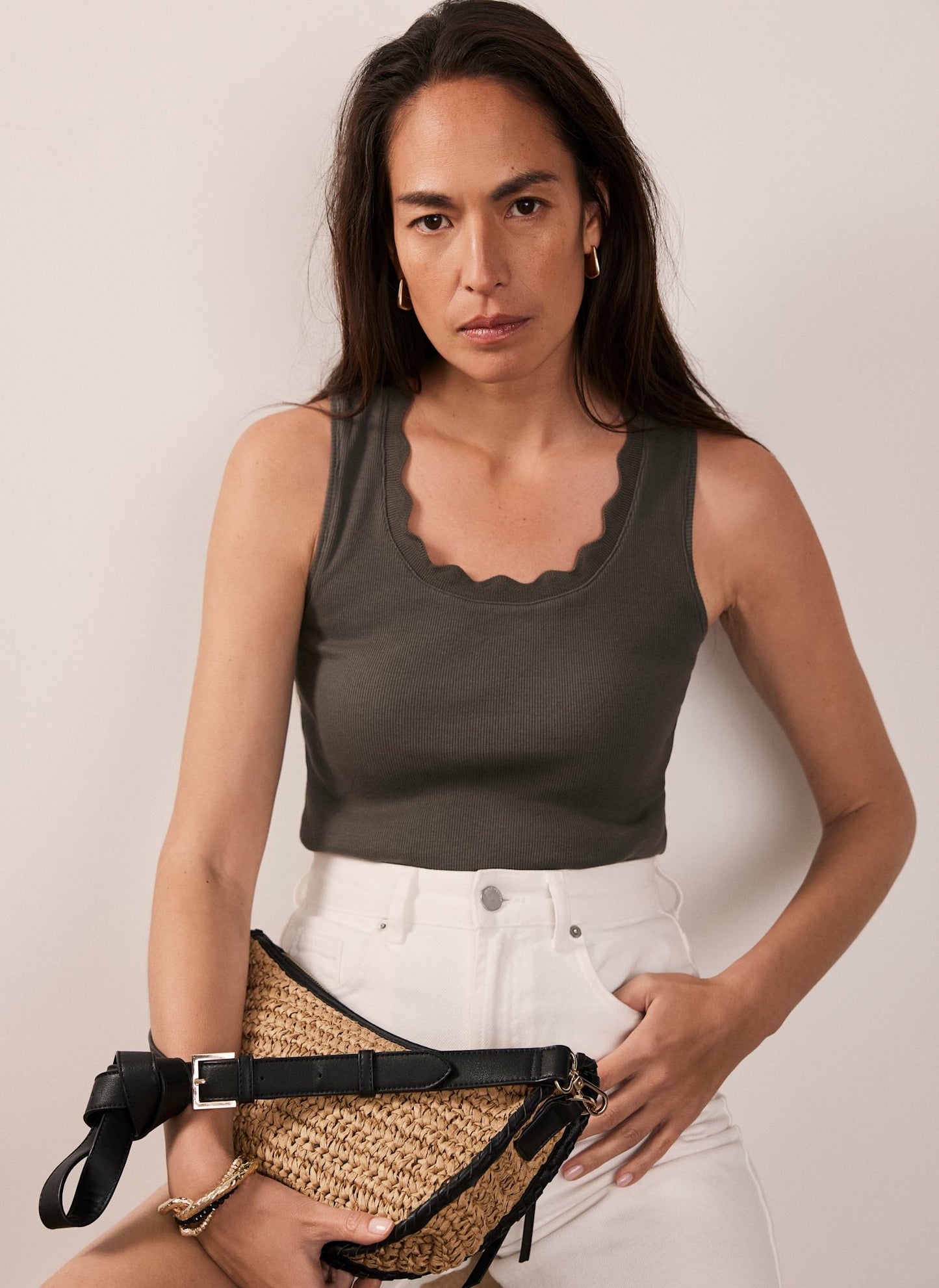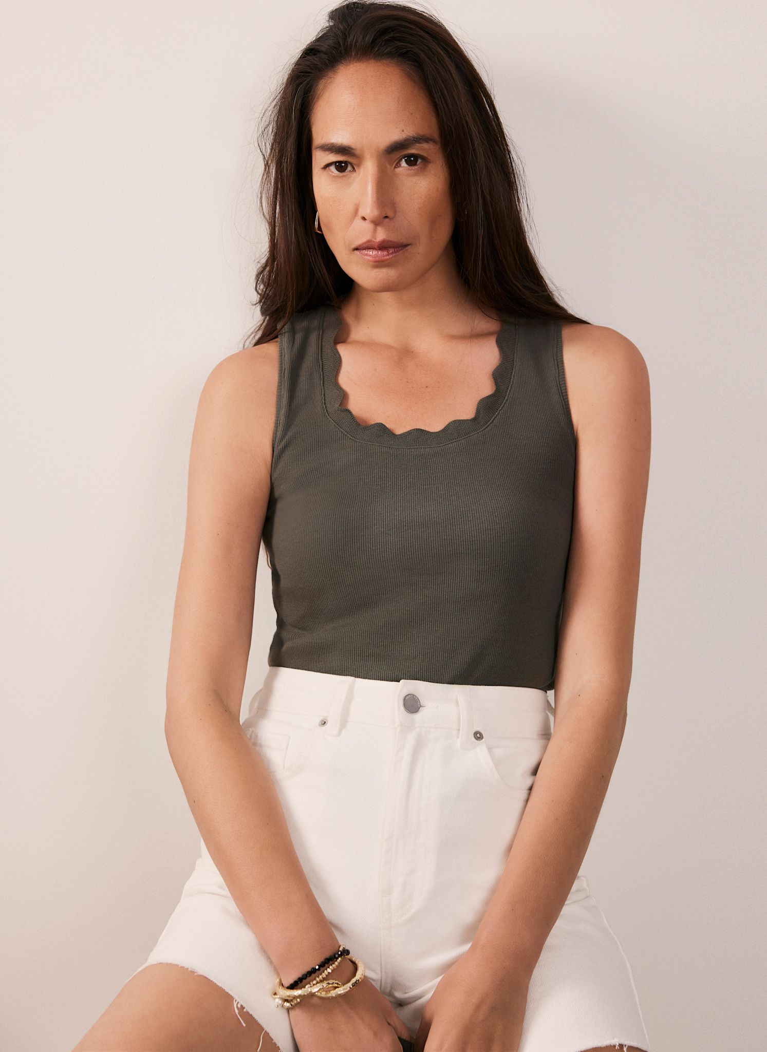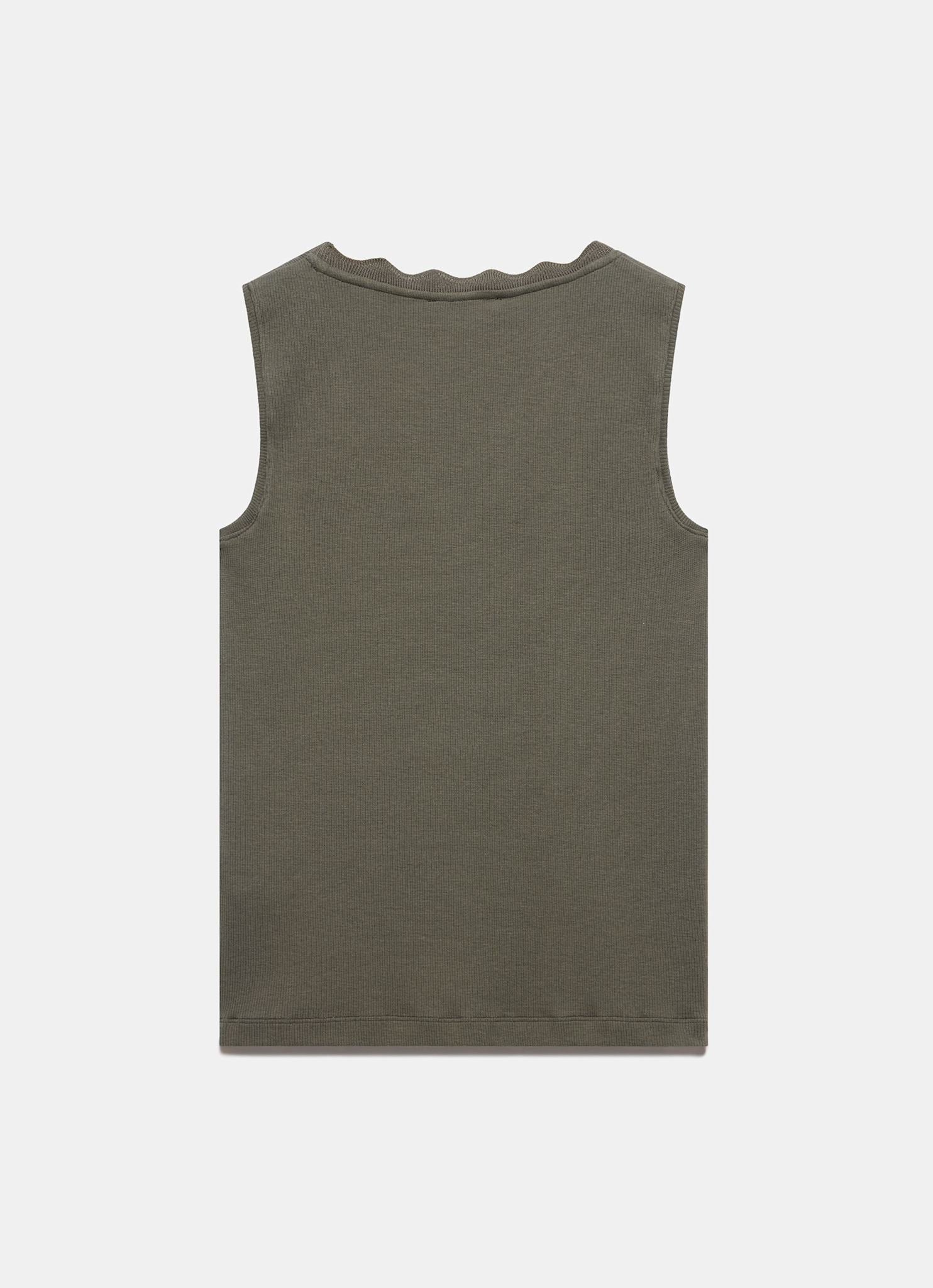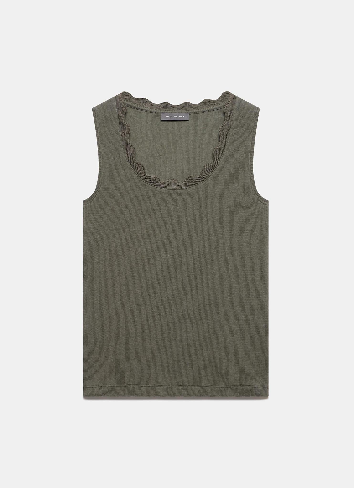 Khaki Scallop Trim Vest Top