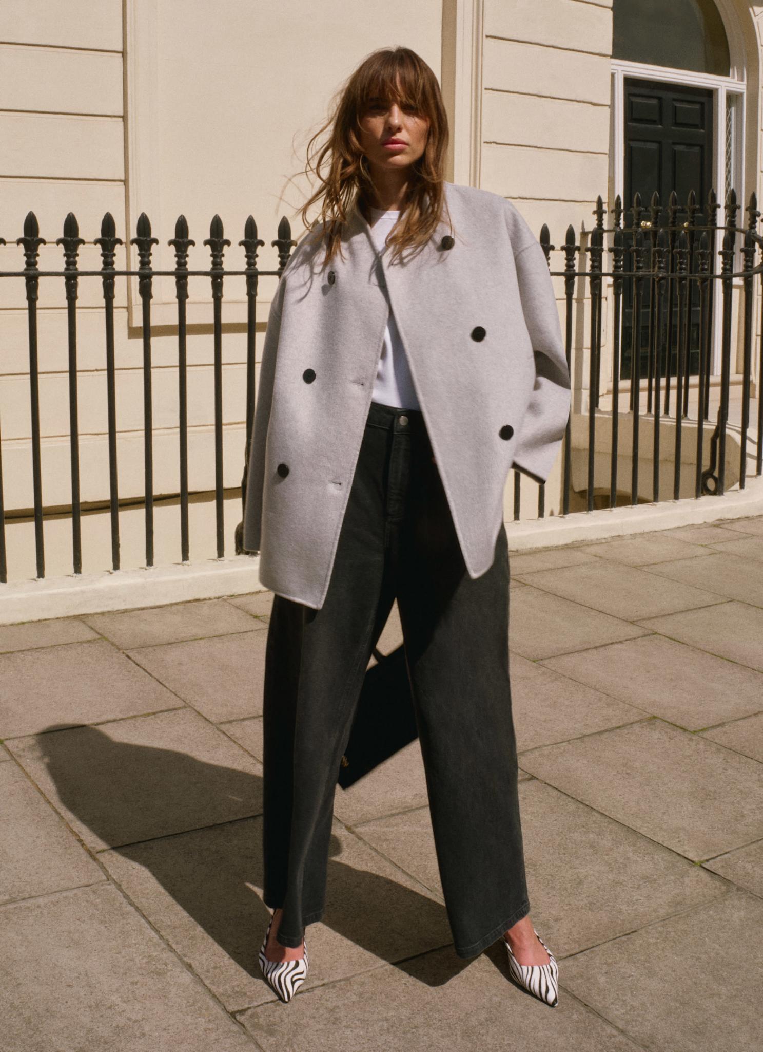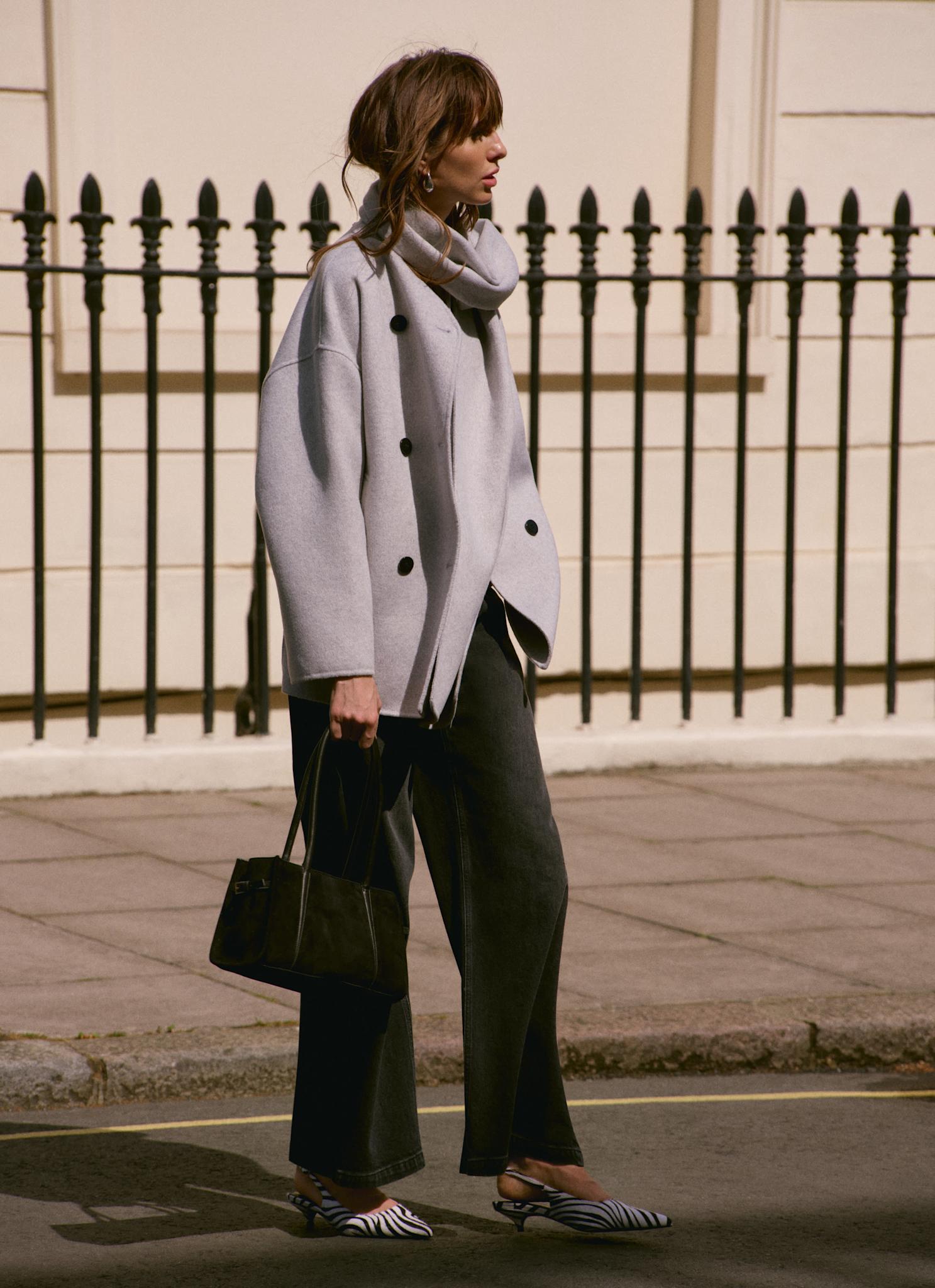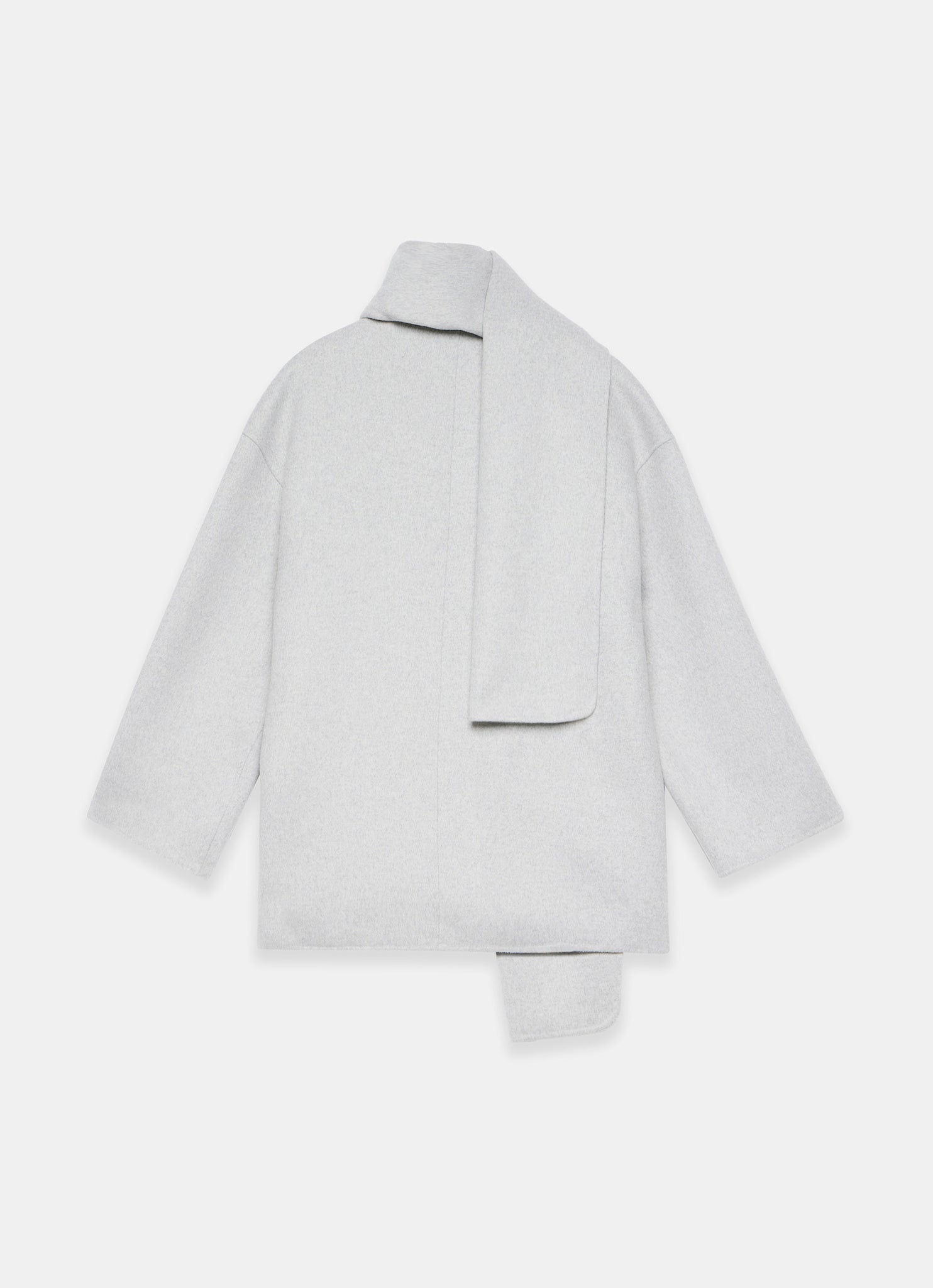 Light Grey Wool Blend Hand Finished Scarf Detail Coat