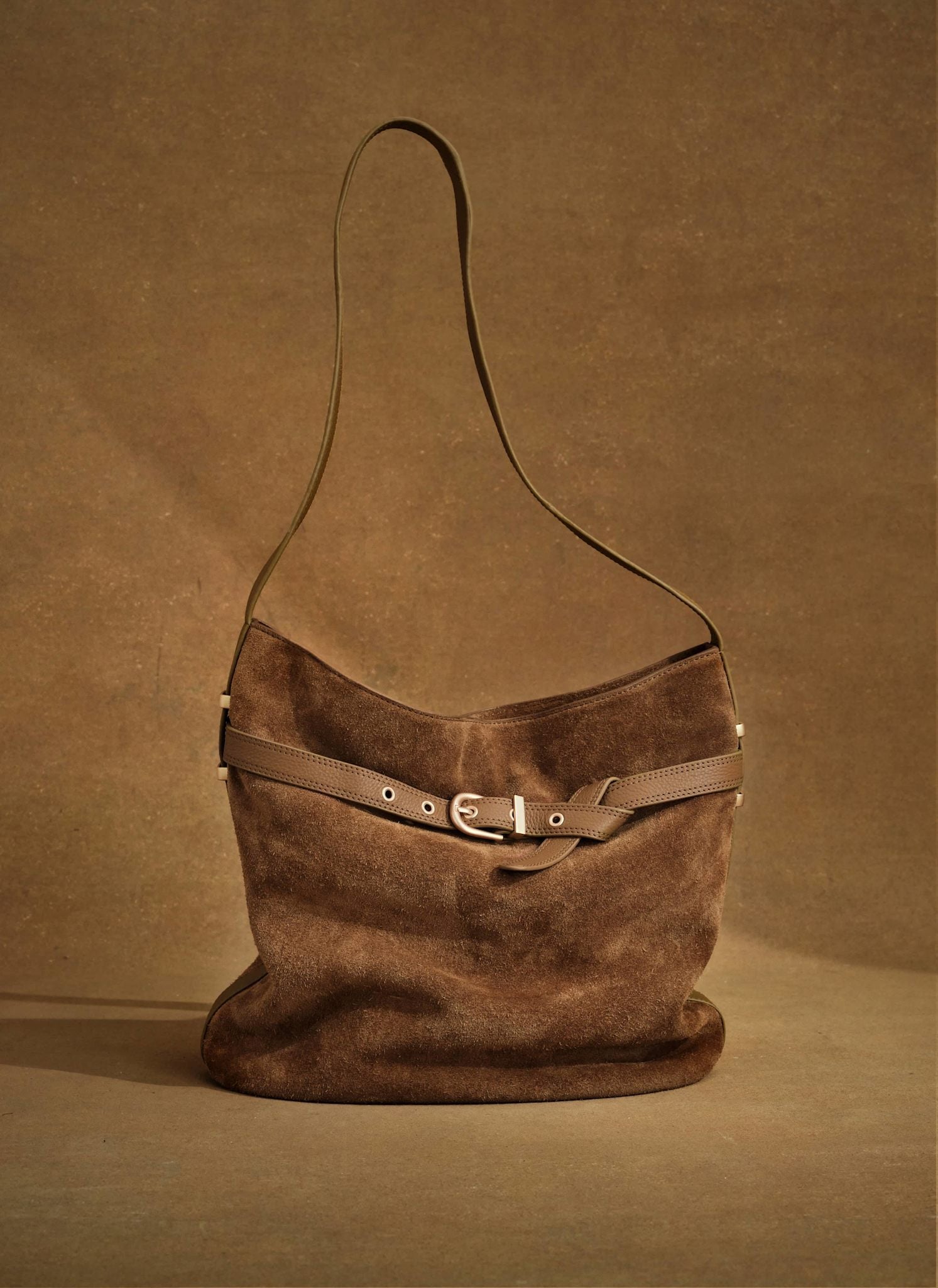 Maci Tan Suede Bucket Bag