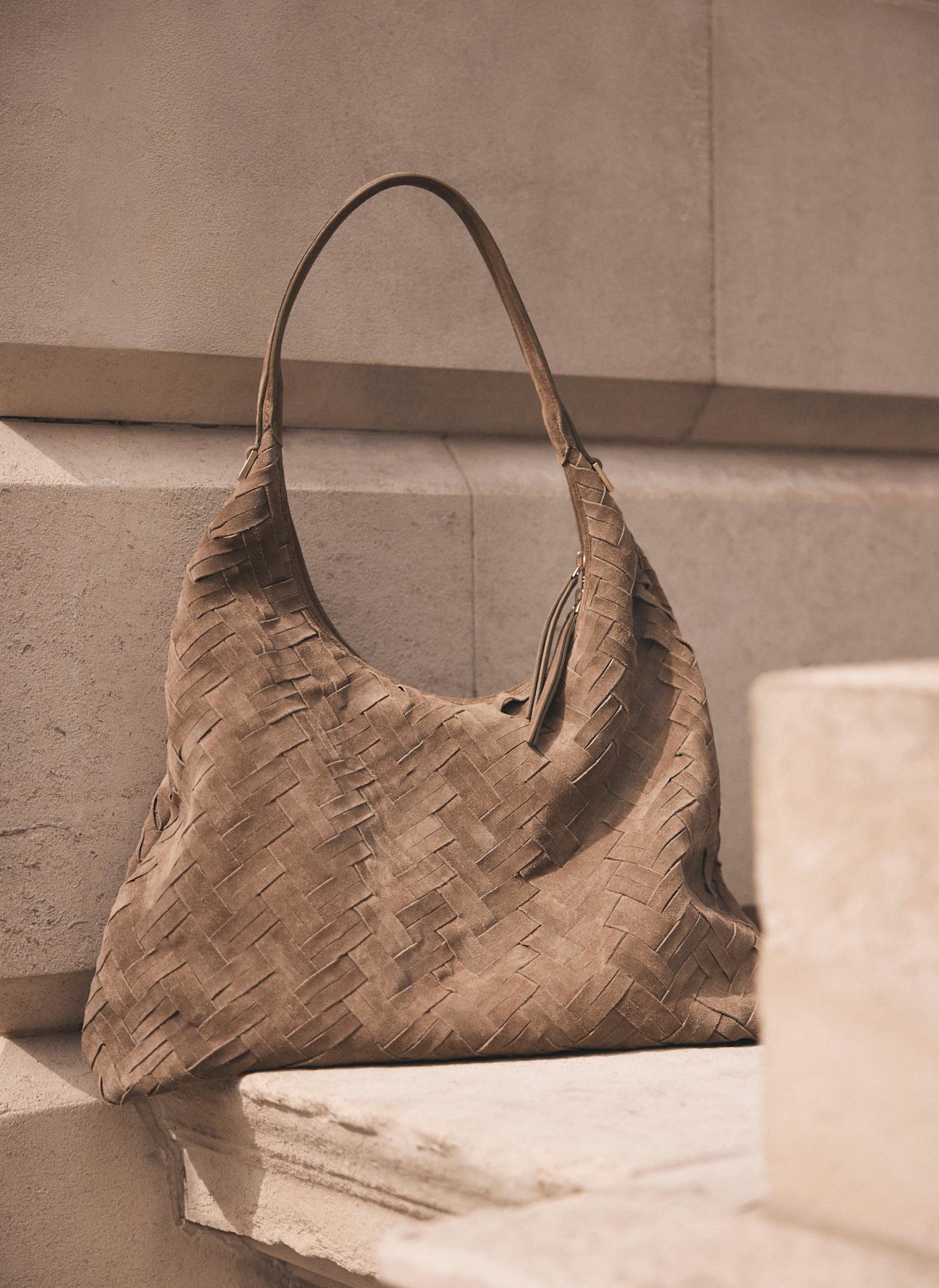 May Neutral Woven Suede Shoulder Bag