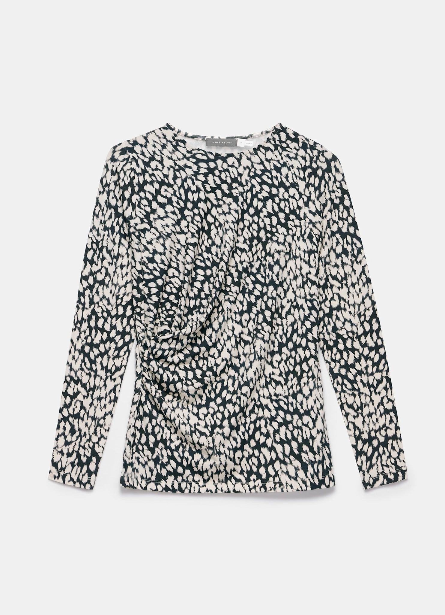 Navy Animal Print Drape Top