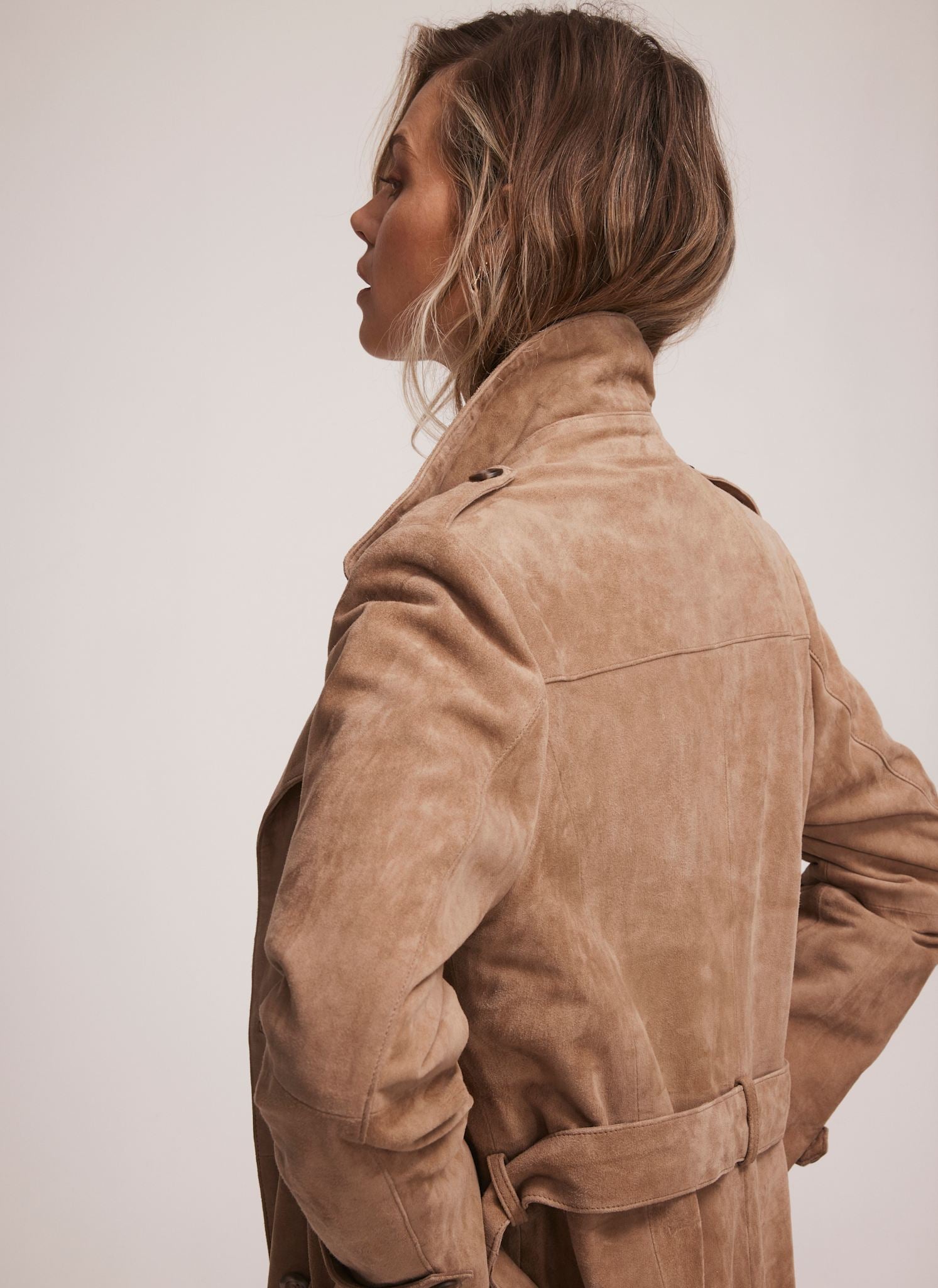 Neutral Suede Trench Coat