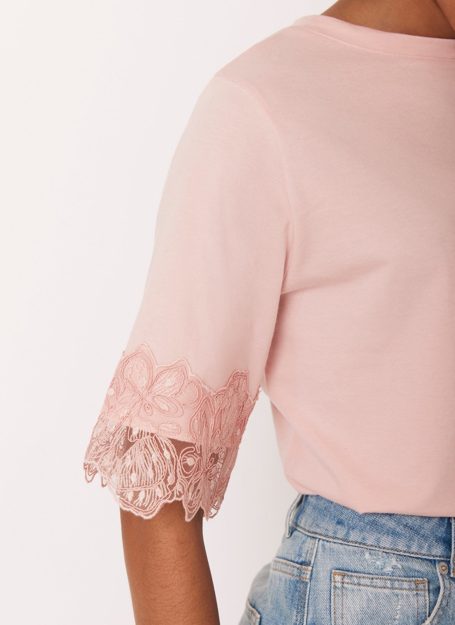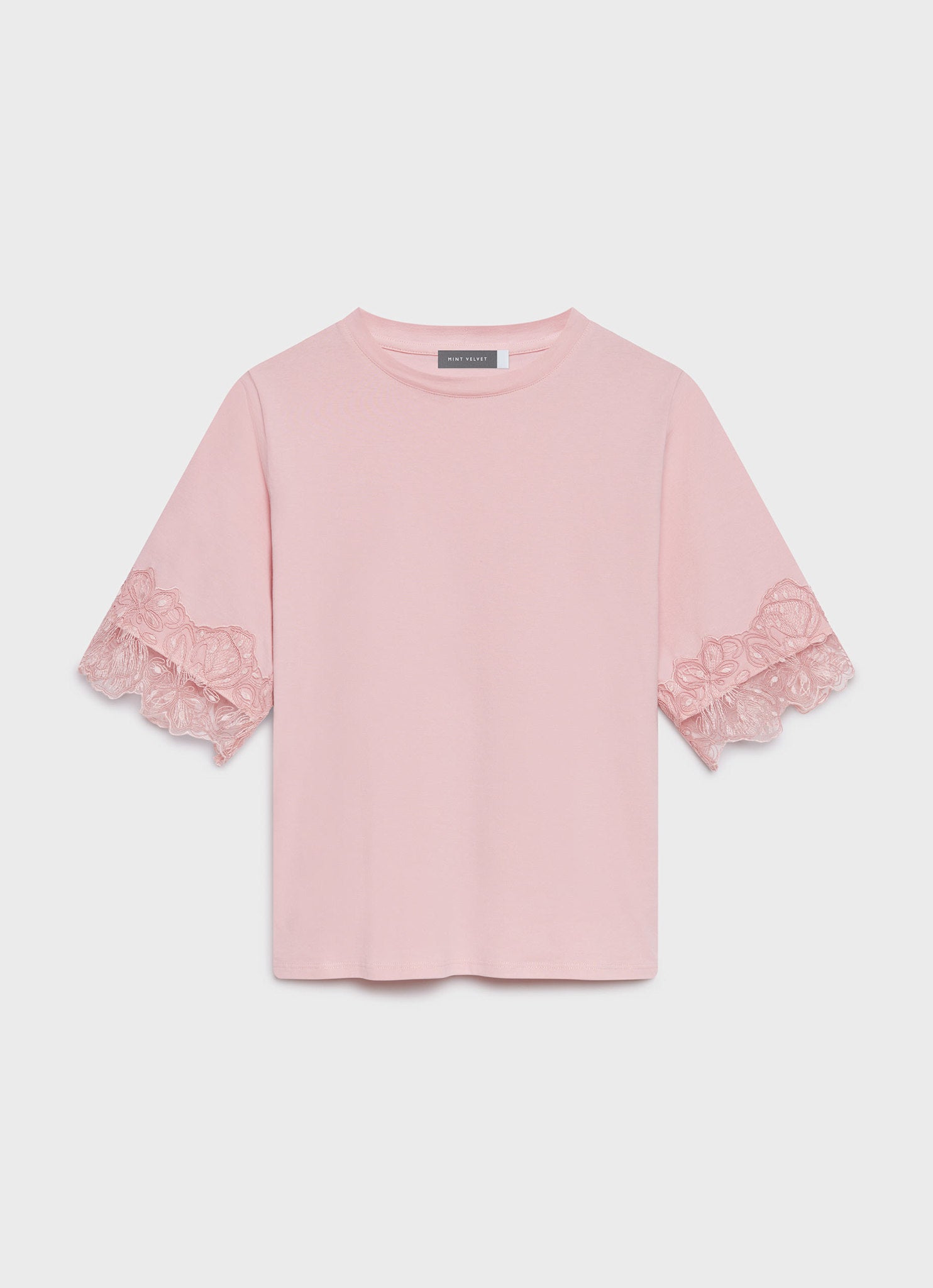 Pink Cotton Lace Trim T-Shirt