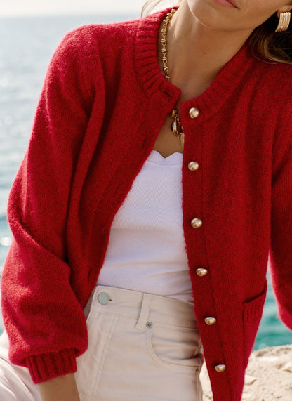 Red Wool Blend Cardigan
