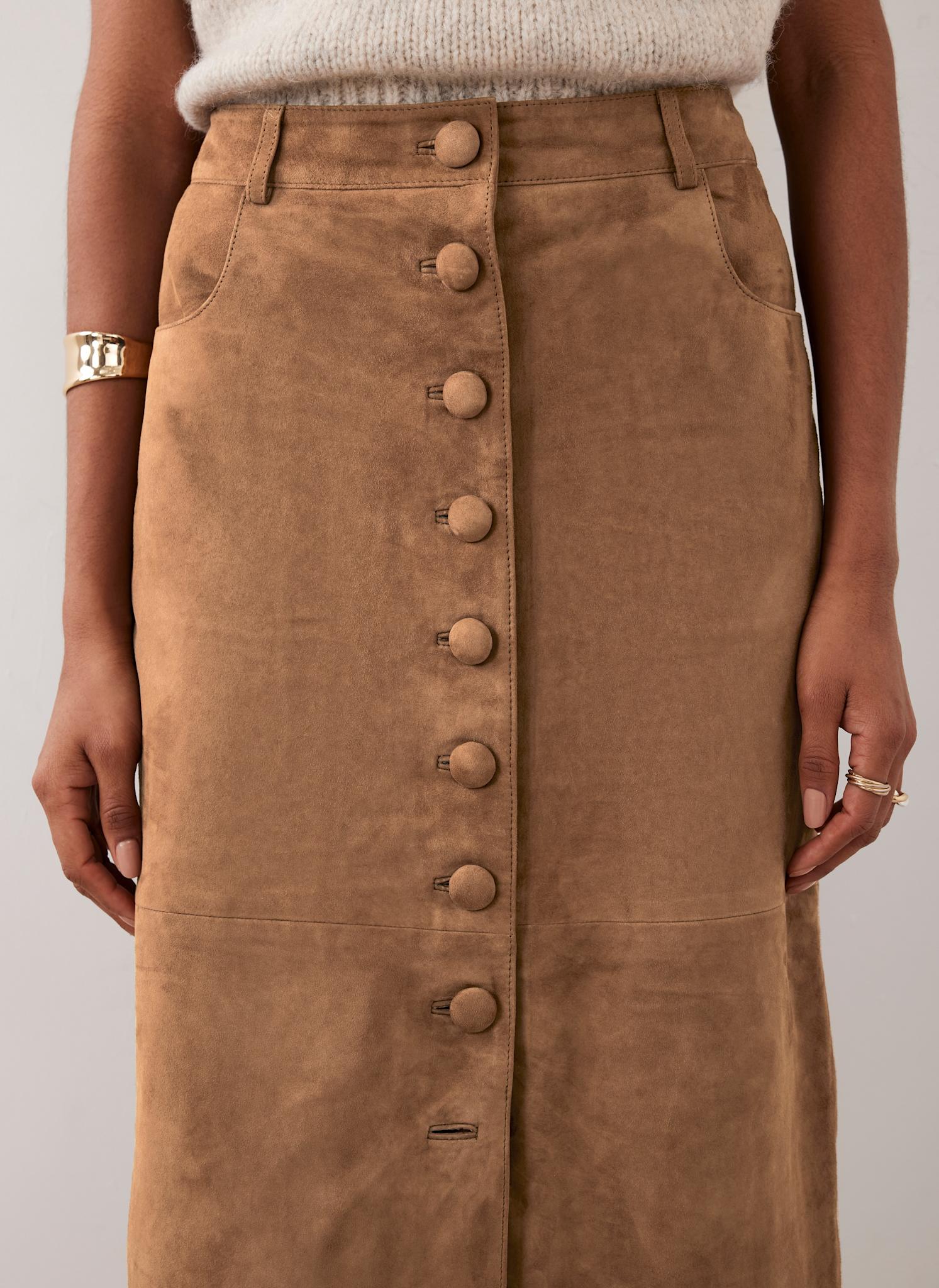 Tan Suede Midi Skirt