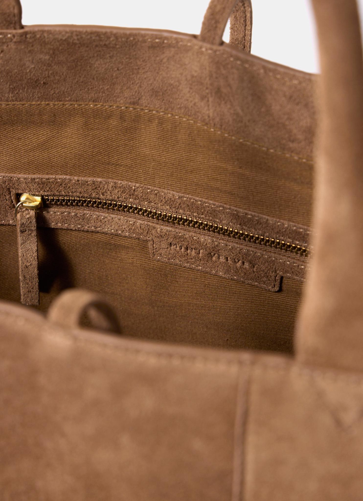 Tan Suede Woven Tote Bag